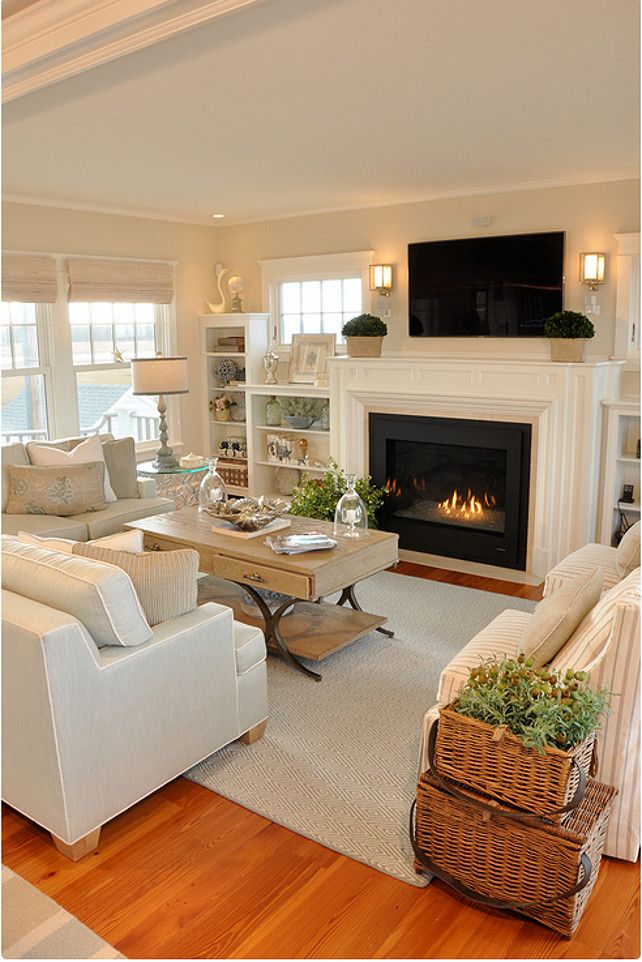 Думаете, в каждой гостиной нужны драпировки? Подумайте еще раз. Здесь голые окна создают освежающий обтекаемый вид, который также использует прекрасное освещение этого коттеджа во Флориде.