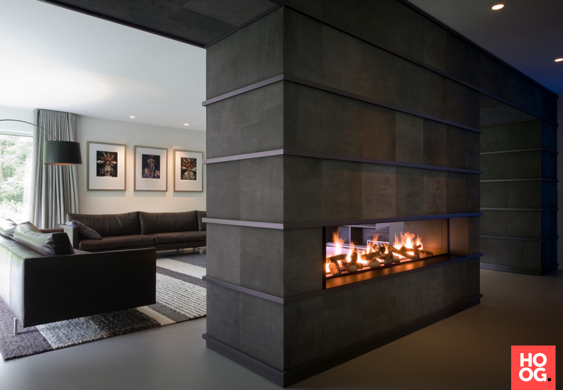 Камин в гостиной в стиле хай-тек