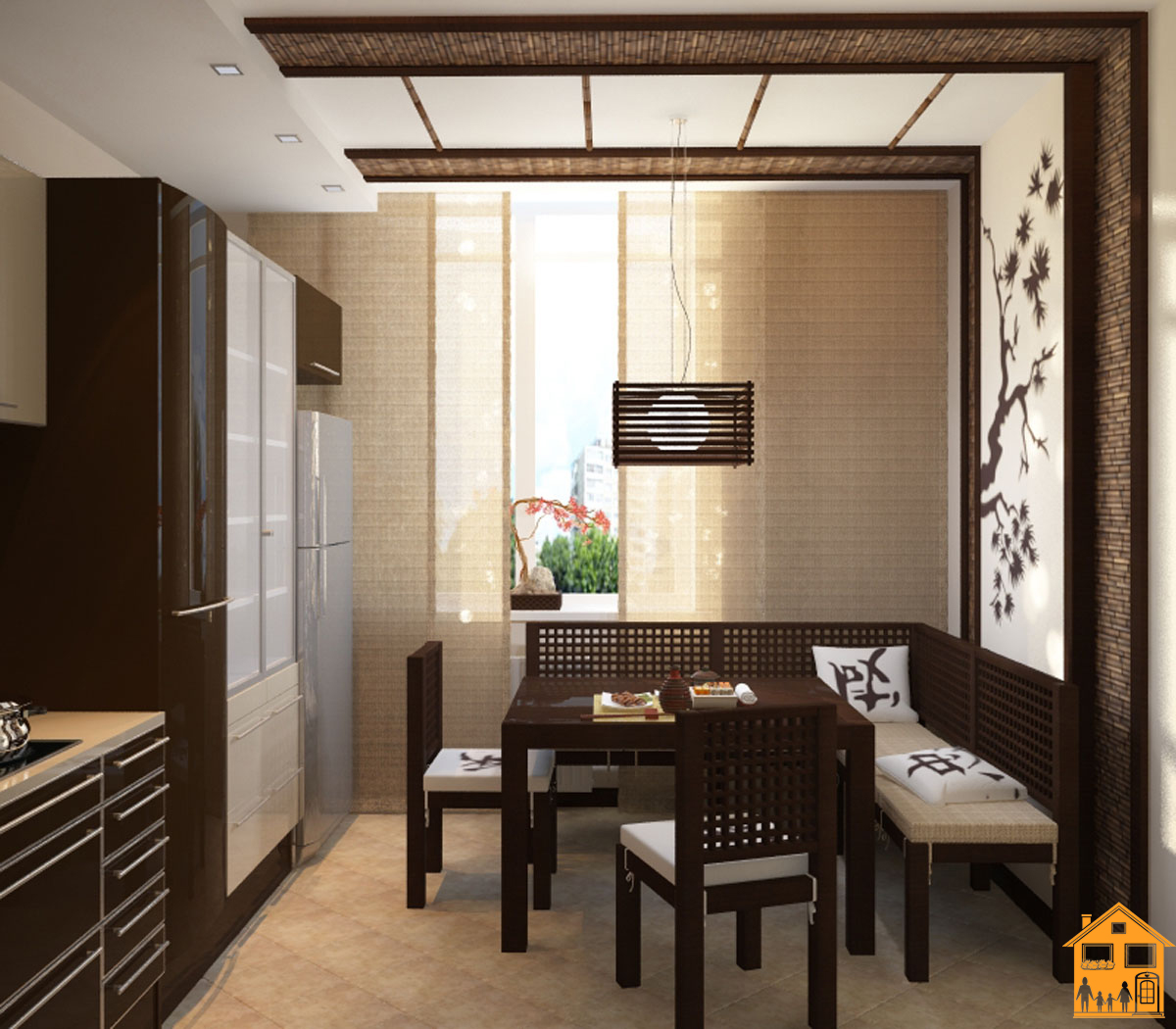 Необходимо помнить, что японский стиль в понимании европейцев – это также смесь западного и восточного интерьера, ведь даже самый преданный ценитель убранства страны «восходящего солнца» вряд ли согласится спать и есть на полу, поэтому давайте рассмотрим особенности японского стиля с точки зрения европейского дизайнера.