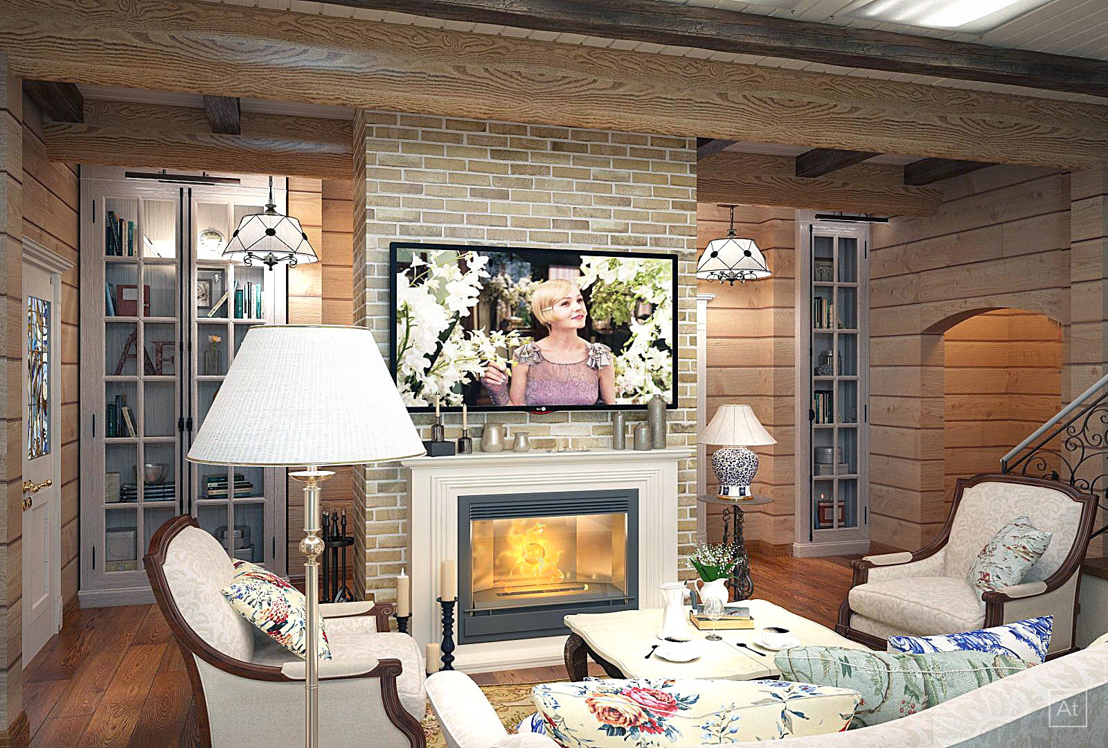Дизайн гостиной в деревянном доме