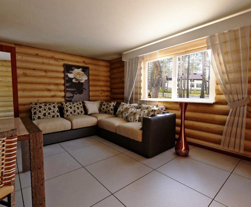 Дизайн гостиной в деревянном доме