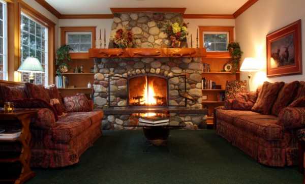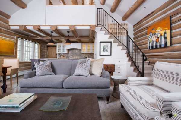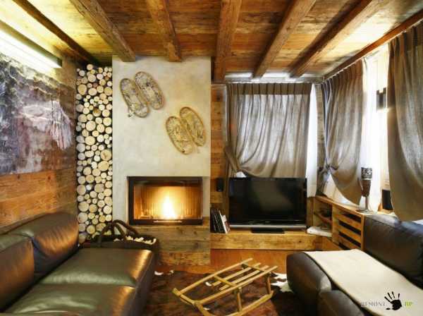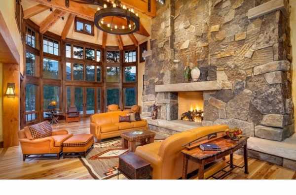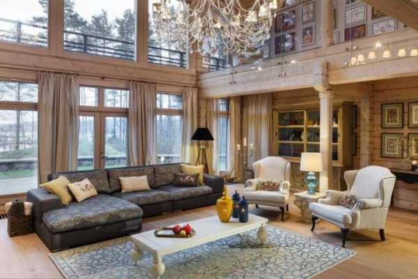Дизайн зала в деревянном доме-шале