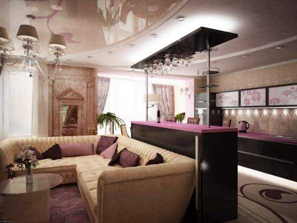 Особенности интерьера гостиной, совмещенной с кухней