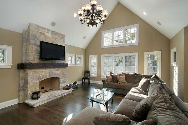 Задуматься над тем, каким должен быть дизайн гостиной в загородном доме, стоит еще на этапе проектирования будущего жилья. Расположение окон, дверей и лестниц, наличие панорамного остекления влияет на общее восприятие пространства и комфорт. На этом этапе также выбирают место для дровяного камина.