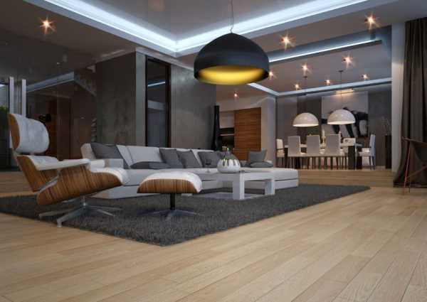 Классическими покрытиями для пола гостиной являются плитка, паркет и ламинат.