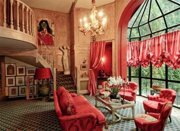 Стены обычно покрашены или оклеены обоями одного цвета. Все оттенки гостиной должны быть не яркими и в одной гамме. Много серого и темного цвета в интерьере приветствуется. Опять же, смотрите, чтобы площадь вашего дома позволяла воплотить все это в жизнь.