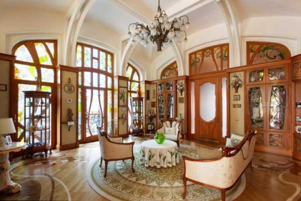 Для модерна характерны изогнутые линии, применение дерева, мозаики, витражей и разнообразие расцветок