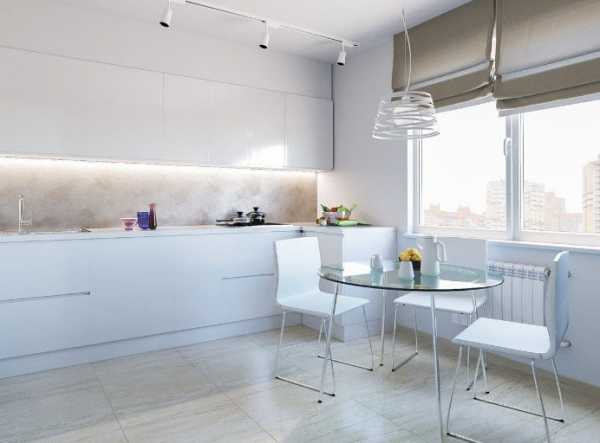 Шторы для кухни в стиле минимализм должны быть максимально практичными и отвечать всем современным требованиям. Такими считаются простота в уходе, наличие антистатической и жироотталкивающей пропитки, огнеупорность и хорошая воздухопроницаемость, которая позволит предотвратить впитывание запахов пищи. Цветовая гамма тут ограничивается белым или светлыми пастельными тонами, однако она не должна разительно отличаться от цвета мебели.