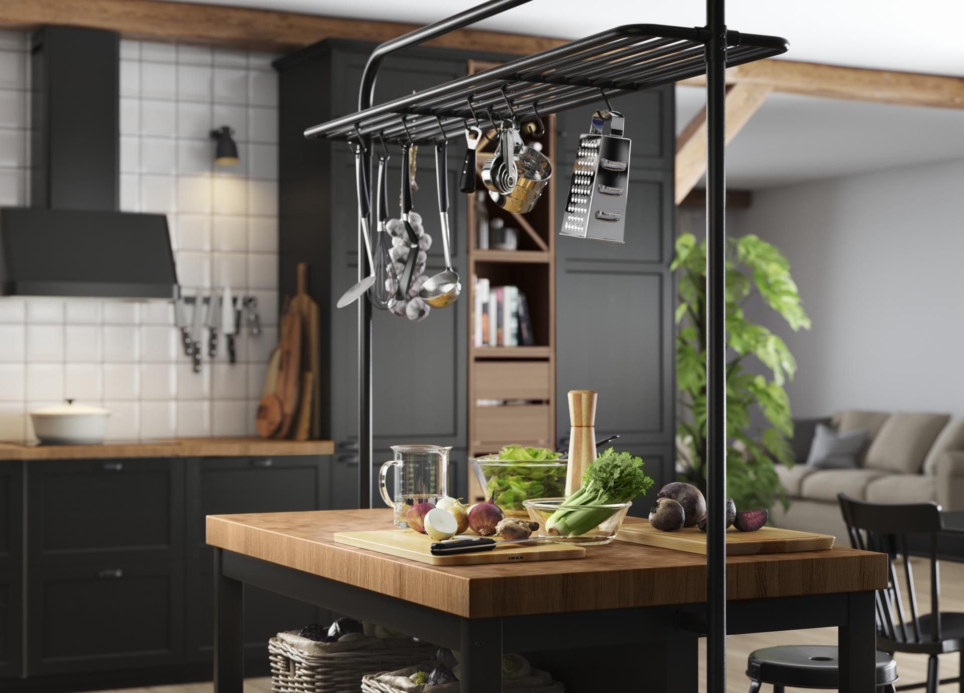 Мебель для кухни совмещает разные фактуры и материалы. Фасады с фактурой необработанного дерева, черные, серые фасады хорошо подчеркнет черная бытовая техника с добавлением хрома и стекла. На мебели приветствуется отсутствие фурнитуры. В духе минимализма стоит исключить традиционные обои на стенах и отдать предпочтение кирпичной кладке, бетону. В качестве напольного покрытия стоит обратить внимание на паркетную доску либо лаконичную плитку. Подвесные открытые лампочки светильников обеспечат точечное освещение и брутальный характер интерьера.