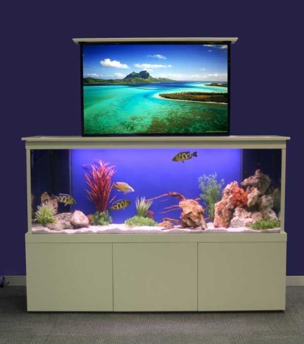 Если резервуар оборудовать подсветкой, то свечение станет приятным дополнением, а также сыграет роль ночника. Большой аквариум, напоминающий экран телевизора, сделает интерьер более живым.