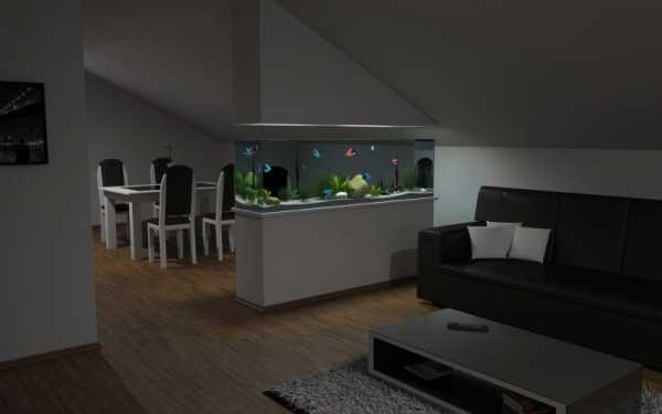 Понятно, что аквариум получится немаленьким. Проект должен учесть его массу, предусмотреть нюансы электропроводки, максимально изолировать две среды.
