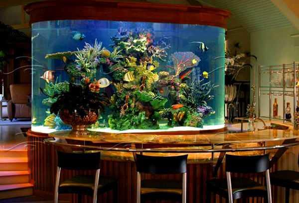 13. Большой аквариум на кухню или гостиную с округлыми краями.