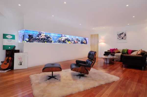 Перегородка, разделяющая помещение, очень выигрывает от встроенного в нее аквариума. Специалисты из Clayton Aquariums интегрировали этот сравнительно небольшой, но производящий эффект аквариум в перегородку, благодаря чему становится видна вторая часть комнаты. Это может существенно преобразить ваш интерьер. О том, что вы таким образом привносите в свой дом кусочек природы, мы даже не будем лишний раз говорить.