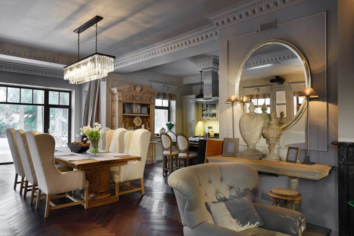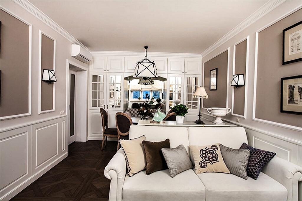 Неоклассическое направление в стране особо популярно, потому что напоминает классический стиль. Выглядит дорого, но при этом натуральность и ценность создается за счет имитации и дешевых строительных материалов.
