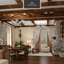В таком интерьере можно наклеить обои с изображением природы, расставить мебель выполненную из дерева и добавить немного аксессуаров в дизайне. Без внимания не останется и потолок, его оформляют балками.