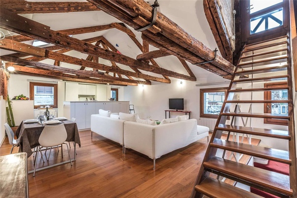 Если отдаете предпочтение деревенскому стилю, но тут необходимо немного состарить потолочные балки. Необязательно сочетать их с основным цветом в помещении. Они могут быть оставлены в той цветовой гамме, что были.