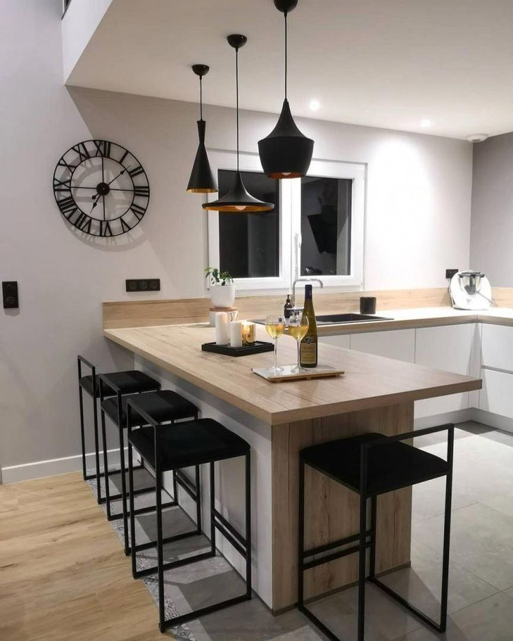 Если монохроматический минимализм вам не по душе, почему бы не реализовать идею бара на кухне? Высококлассные варианты, такие как золотые светильники и стильные детали, могут добавить дополнительный штрих роскоши.