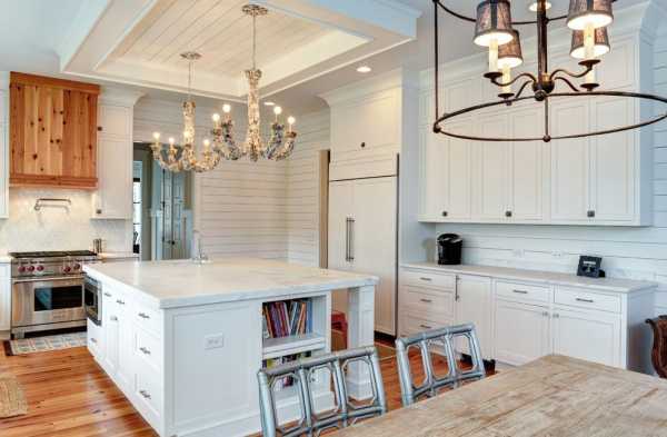 В кухне стены и потолки, обшитые деревянной вагонкой смотрятся очень дорого, аккуратно и изысканно. Для достижения максимального эффекта декоративную вагонку окрашивают в тон натурального дерева или в белый цвет, а также обрабатывают “под старину” или покрывают патиной.