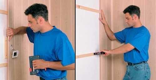 - Хотя сам монтаж прост, он должен производиться на подготовленные стены: в жилых помещениях на стены сначала крепится обрешетка, а уже на нее монтируются деревянные планки.
