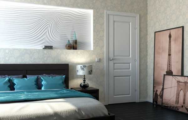 - Светлые двери и белый плинтус визуально расширят комнату в том случае, если напольное покрытие будет выполнено в темных тонах, а стены – в светлых. В больших помещениях такой вариант не будет удачным, поскольку потеряется ощущение комфорта. Создать уют в данном случае будет очень тяжело даже при использовании самых хитрых декораторских приемов.