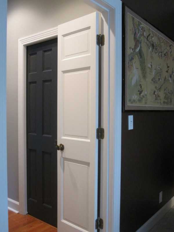 5. В больших комнатах площадь можно сократить, если применить эффектное содружество темных дверей и белого плинтуса, цвет наличников в этом случае не имеет особого значения и подбирается или под двери, или под плинтус.