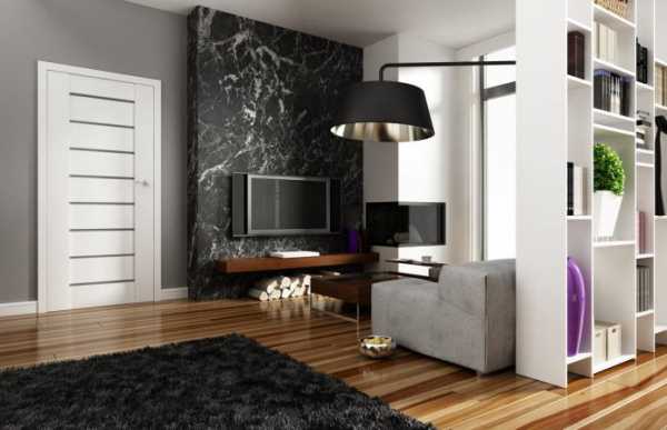 3. В сочетании с темными полами и идентичным цветом дверей — зрительно расширить ограниченную площадь (также можно применить настенный белый молдинг — так комната станет еще больше, но «порежется» посредине, поэтому подобные союзы лучше организовывать в вытянутых или узких помещениях).