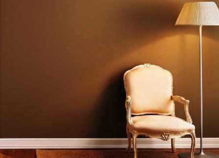Темные стены в комбинации с белыми плинтусами смотрятся очень эффектно