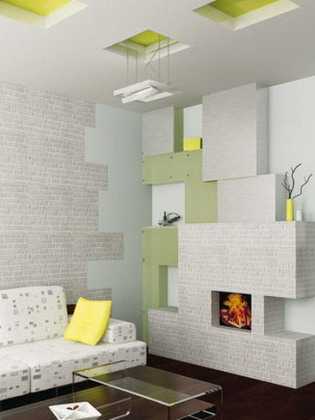 Наконец, можно выложить своими руками перегородку из кирпича или создать из него выступ, каминный портал, другие элементы. Отличным решением станет кирпич силикатный, имеющий белый цвет. Но он не всегда подходит по фактуре, так как слишком гладкий.