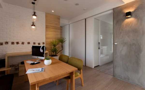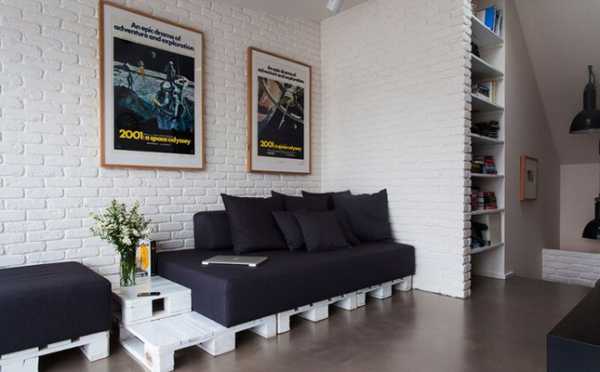 Белая кирпичная стена в гостиной позволит разделить пространство на зоны, что пригодится при создании студийной комнаты.