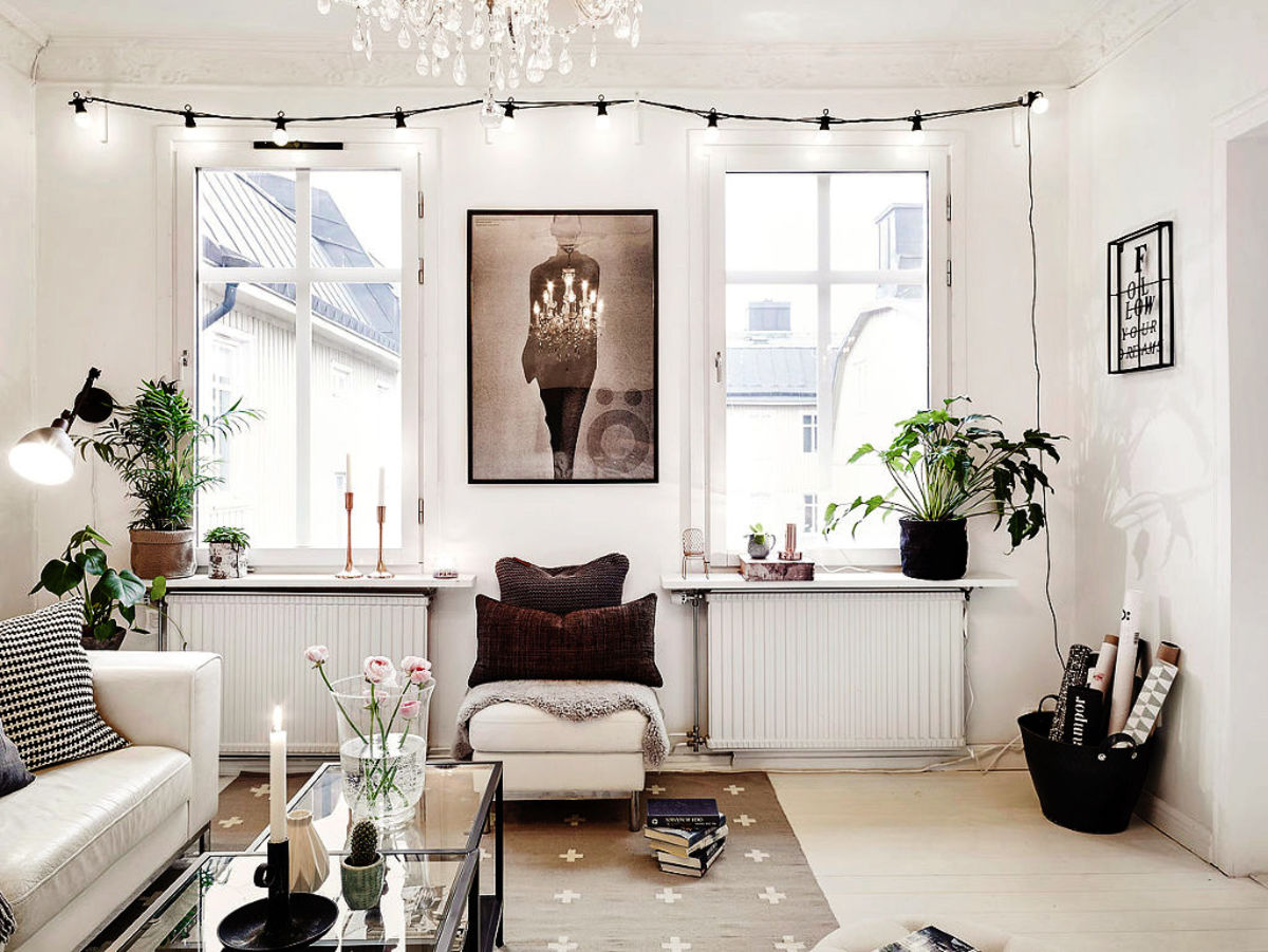 Такой популярный сейчас скандинавский стиль просто не может обойтись без белых стен. Путь не во всей квартире, но хотя бы несколько комнат обязательно выкрасьте в этот цвет. Проверено — этот шаг можно считать самым точным по направлению к созданию интерьера c норвежскими и шведскими мотивами.
