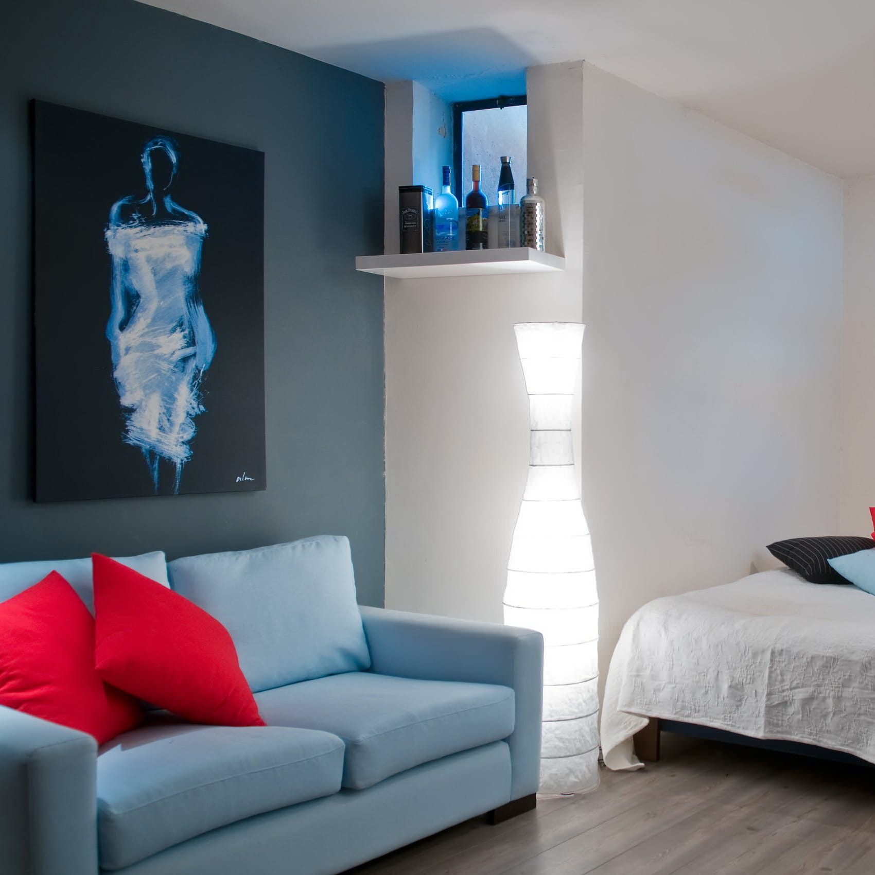 Светлый потолок над черными стенами визуально добавит высоты помещению.Темная окраска может вызвать чувство давления; Такой прием лучше использовать в помещениях с высокими потолками, в интерьерах в стиле лофт.