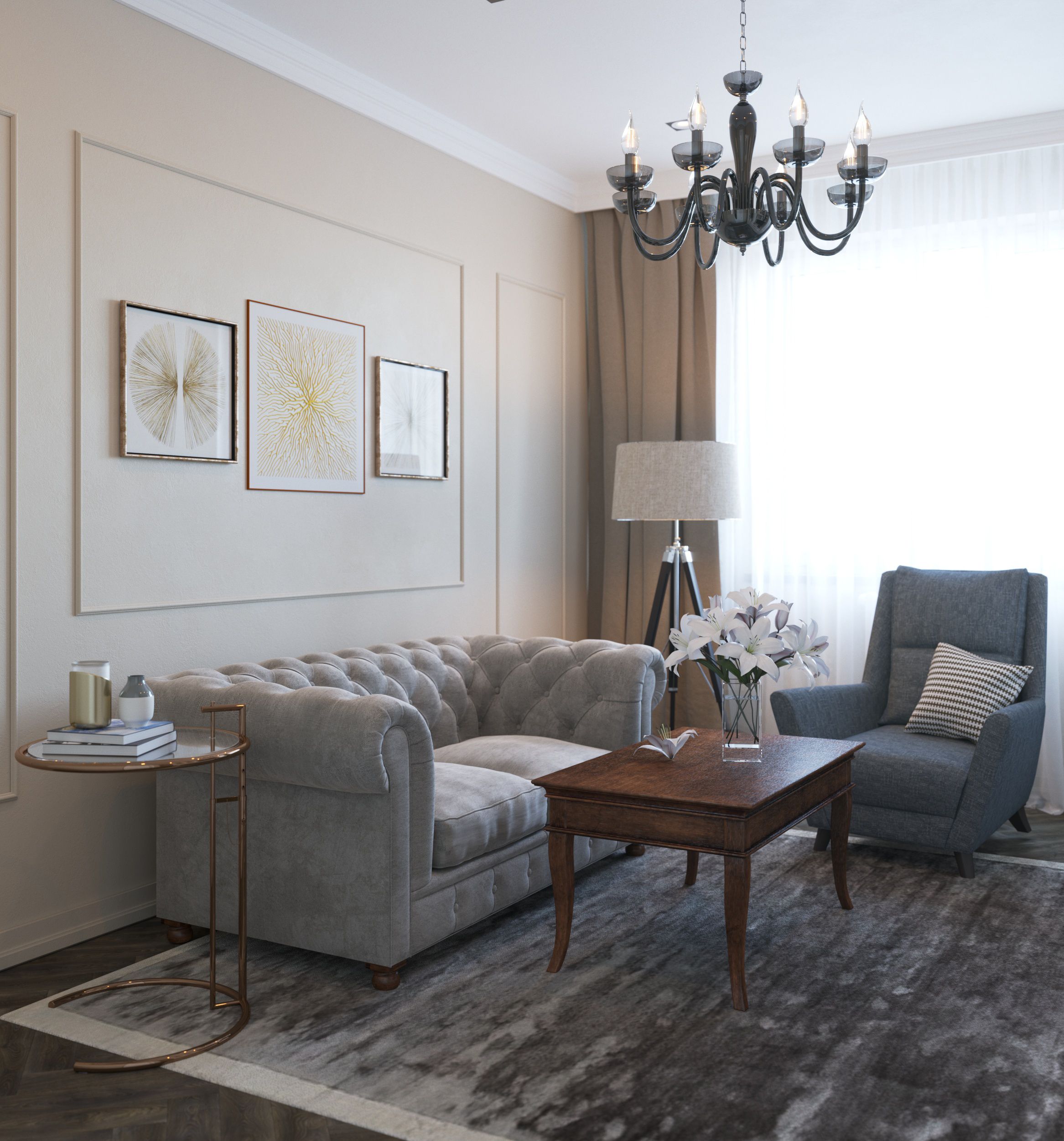 Атмосфера гостиной должна располагать к отдыху и неспешным беседам. Серый цвет отлично справляется с этими функциями: