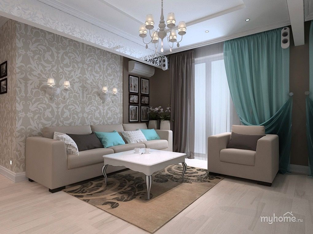 Цвет морской волны на бежевом фонеИсточник italstroy.ru Приглушенная бирюза освежает интерьер Источник houzz.comДуэт бежевого с голубым освежает, уравновешивает и смягчяет интерьер. Он не требует дополнения в виде ярких акцентов. Голубой цвет достаточно насыщенный сам по себе. Комната в нейтральном бежевом не будет скучно выглядеть, если подобрать пледы, подушки, шторы и мягкую мебель в голубых тонах.