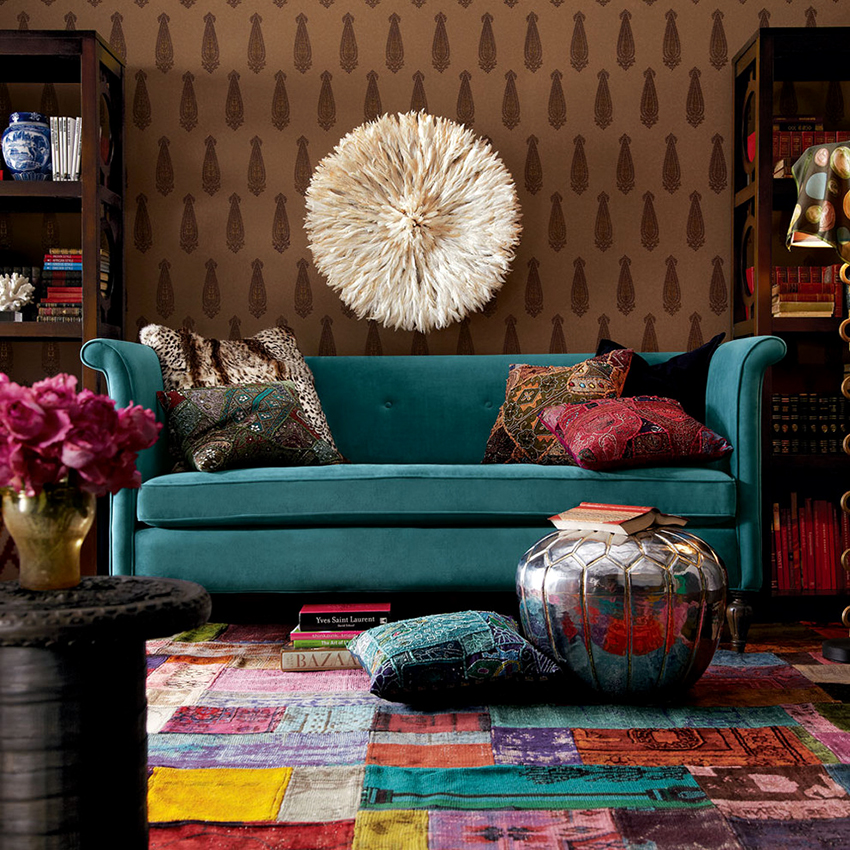 Текстиль и обои играют одну из важных ролей в интерьере, оформленном в стиле «бохо». Чем живописней орнамент, тем лучше!