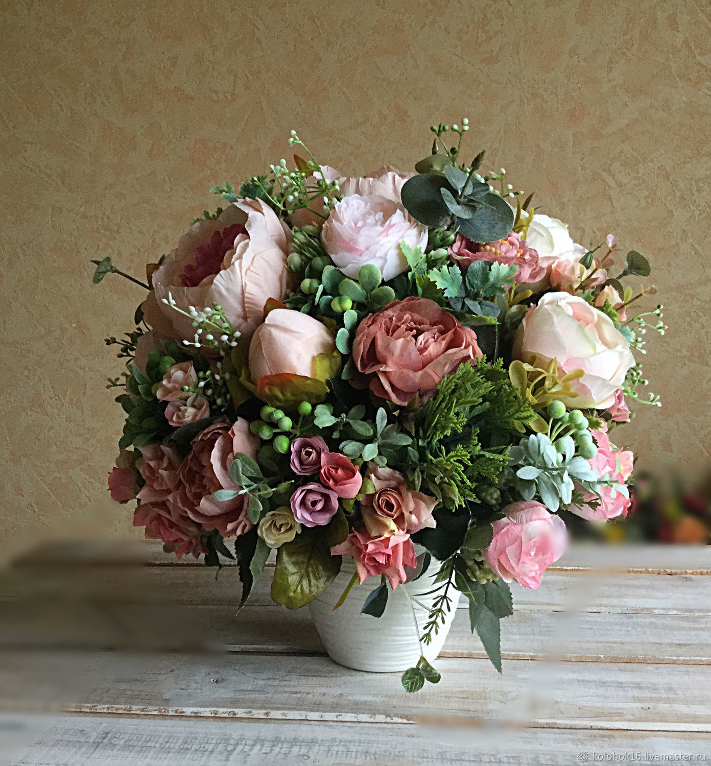 Букеты из искусственных цветов для интерьера фото: Композиции из искусственных цветов для интерьера: красивый декор, букеты как живые, композиции на стену и на пол