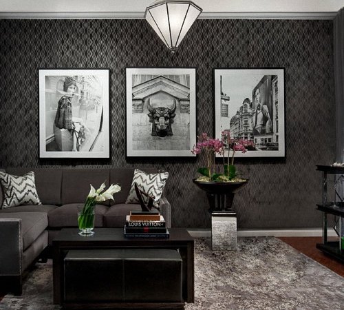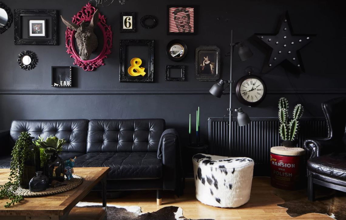 Кардинально изменить гостиное помещение сможет оклеивание обоями или окрашивание стен в черный цвет.