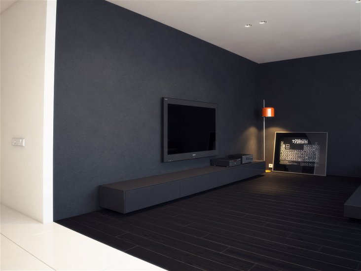 Создать черные стены можно с помощью покраски стен. Краска может наносится прямо на стену, если поверхность достаточно ровная, вагонку или же на обои под покраску. Для жилых помещений лучше выбирать матовую краску. Матовые черные стены смотрятся более благородна, в них не бликует свет и не создается ощущение беспорядка. Оттенок черного лучше выбирать сероватый. Идеальной краской станет та, которая будет похожа на черную школьную доску. В такой матовой комнате Вы будете чувствовать себя комфортно.