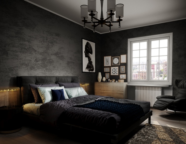 Дизайн комнаты с чёрными стенами, идеи оформления