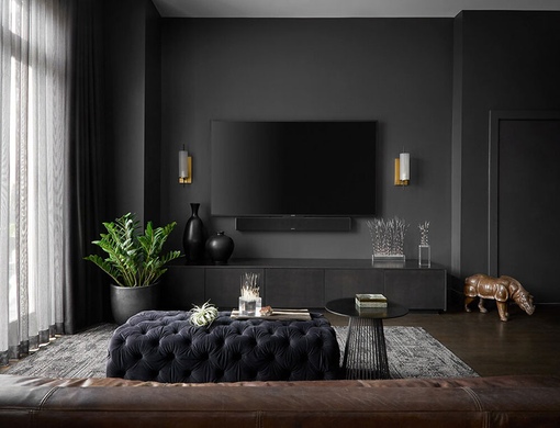 Любите нестандартные интерьерные решения? Тогда идеальным вариантом для вас станет черная гостиная, придающая интерьеру изысканность, элегантность и благородство, а также подчеркивающая великолепный вкус хозяев.