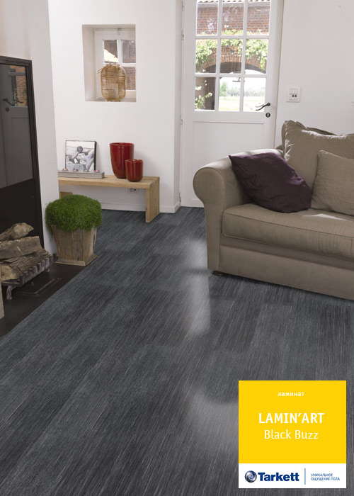 Черный ламинат при оформлении помещения используется не очень часто. Этот цвет придает комнате элегантности, солидности, смотрится очень дорого и неординарно. Стоит он не дороже, чем остальные виды такого покрытия. Определиться с выбором можно, полистав каталог напольных покрытий Таркетт.