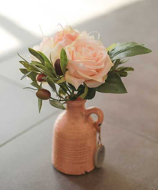 Маленький букетик также может быть помещён для большей декоративности в керамический горшочек
