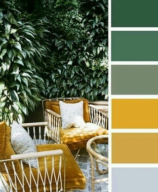 | желтый | серый, фиолетовый, коричневый, зеленый, черный | сиреневый, голубой, бордовый, розовый | иллюзия освещения солнцем, желтый цвет дарит хорошее настроение и бодрость |