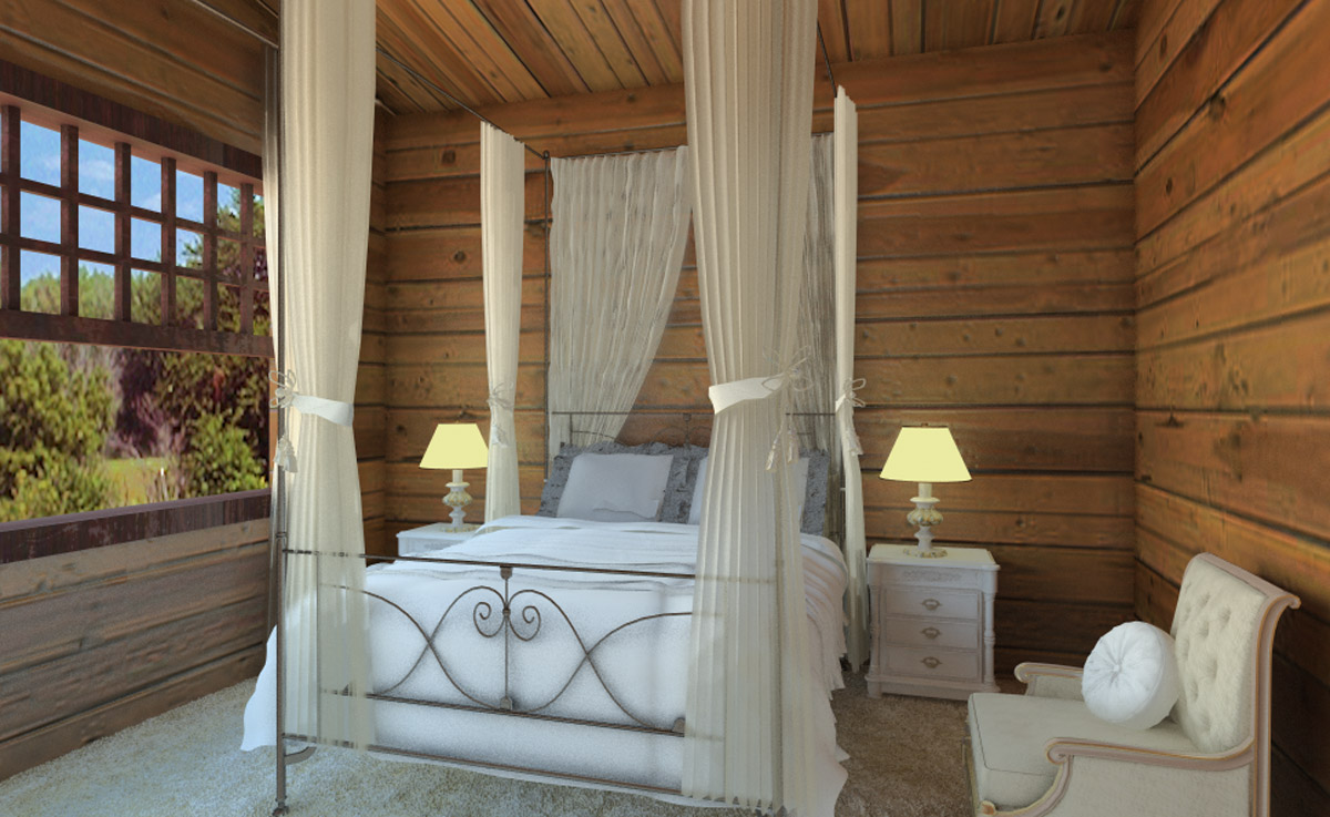 Деревянная постройка довольно специфическая, поэтому и дизайн нужен подходящий.