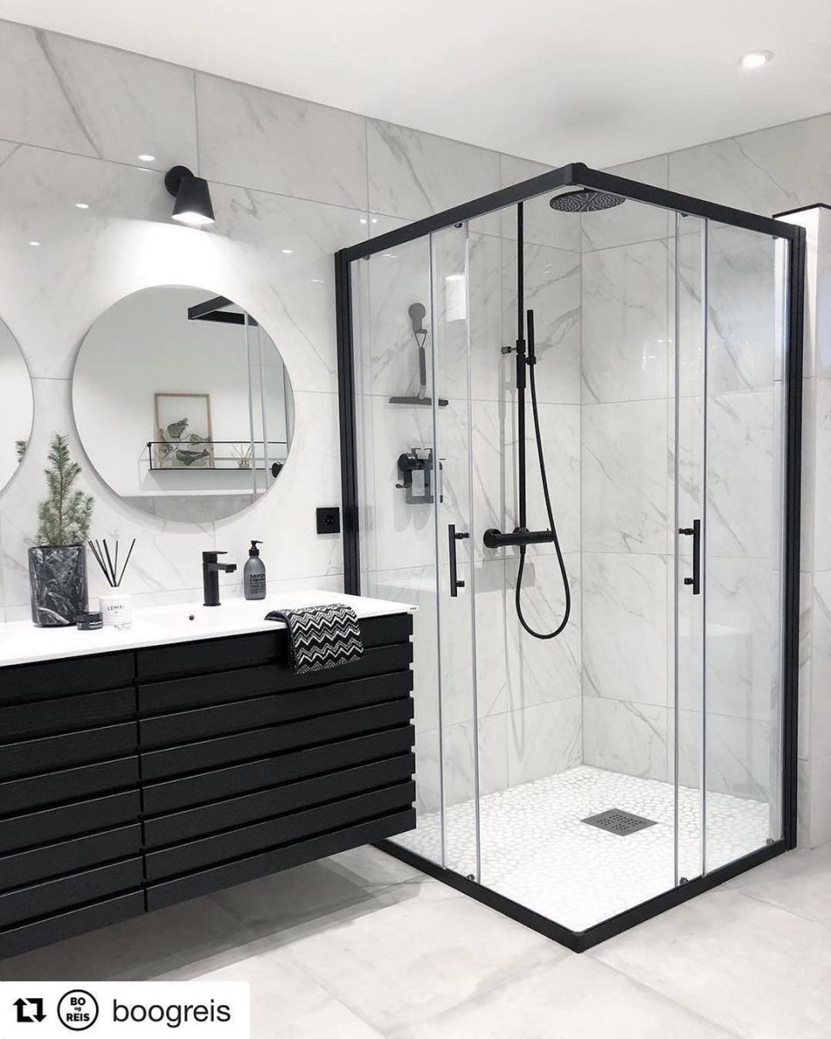 Вам также необходимо принять во внимание форму вашей душевой зоны и выбрать ли вы закрытый или открытый душ. Все дело в том, что делает пару максимально комфортной и имеет достаточно места для свободного передвижения.