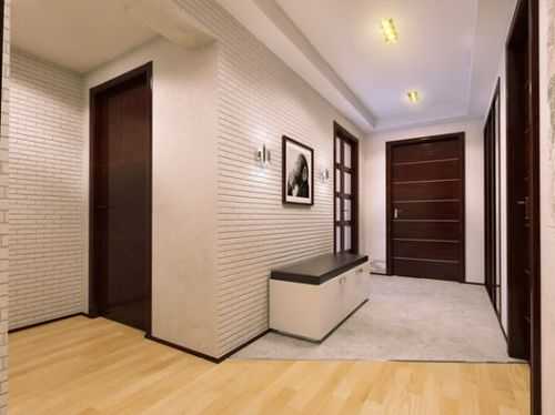 - Красивый конрастный дизайн коридора с темными межкомнатными дверями.