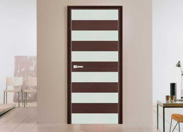Дверь выбирают, в зависимости от того, какого цвета пол или ламинат, и какой мебелью обставлено помещение. Расчет здесь должен быть на контраст, и это выигрышная идея. Белые стеклянные вставки в полотне из темного шпона будут прекрасно гармонировать со светлыми интерьерами.
