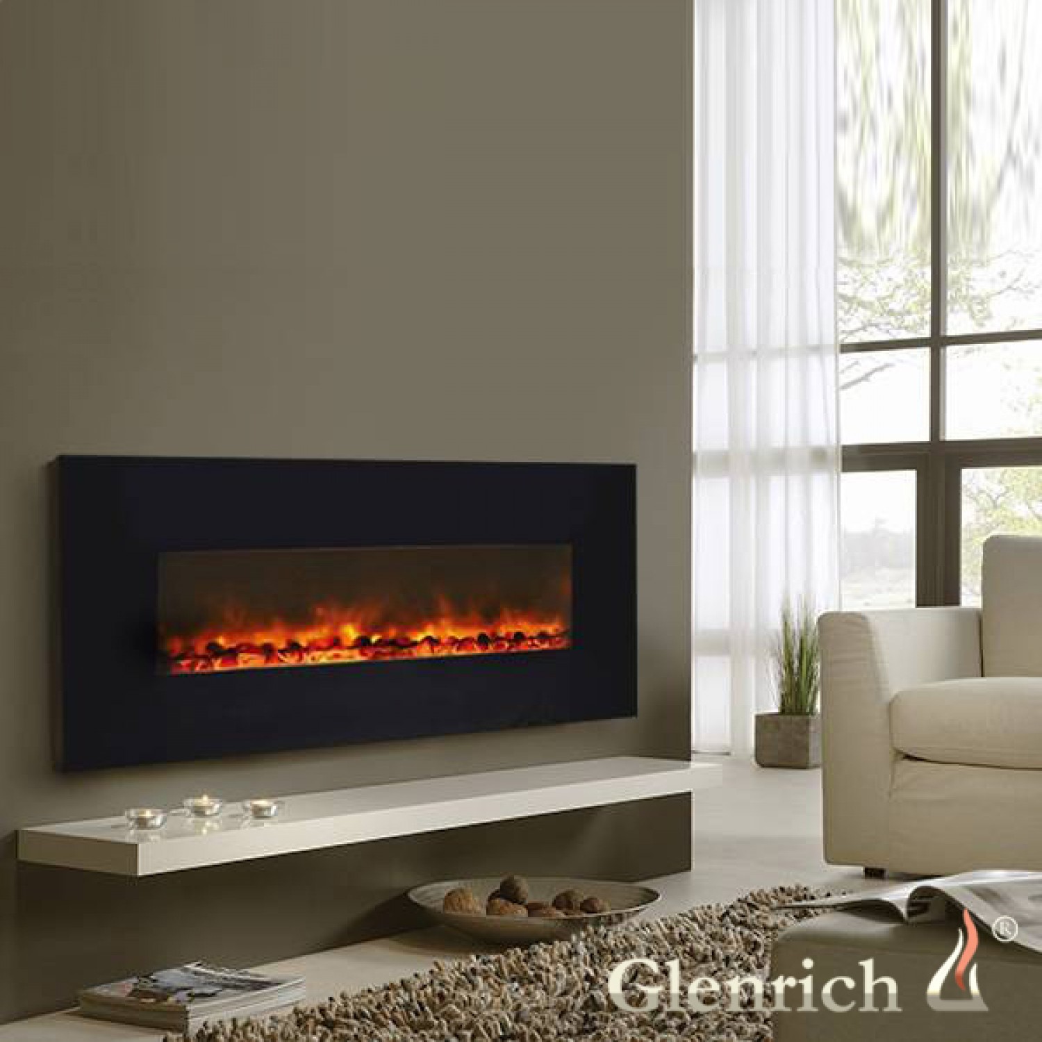 Варианты настенных электрокаминов в широких рамах, представленные в серии Hi-tech, лучше устанавливать на уровне около метра от пола, чтобы при включении электрокамины в интерьере были хорошо видны.