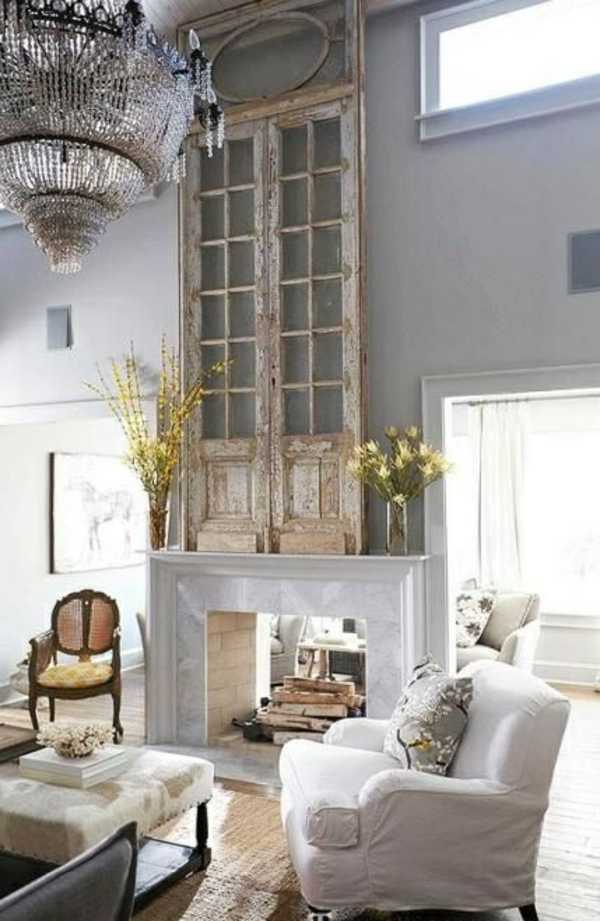 Нечто аналогичное можно создать и в обычной комнате с высокими потолками, задекорировав место над очагом перевернутой лестницей, ступени которой ведут в абсолютное никуда.