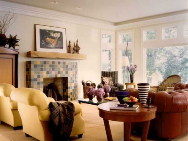 Наличие камина в интерьере городской квартиры требует соответствующей организации зоны отдыха в прилегающем пространстве. Наиболее комфортен отдых в мягких глубоких креслах, между которыми можно установить симпатичный кофейный столик. Последний должен быть невысоким, чтобы не закрывать вид на топку. В просторных комнатах вместо кресел стоит установить композицию из диванов с ковром и журнальным столиком между ними.
