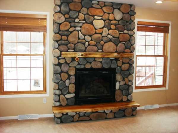Отделка фальш-каминов в деревенском стиле радует разнообразием материалов. На их порталах можно видеть:
